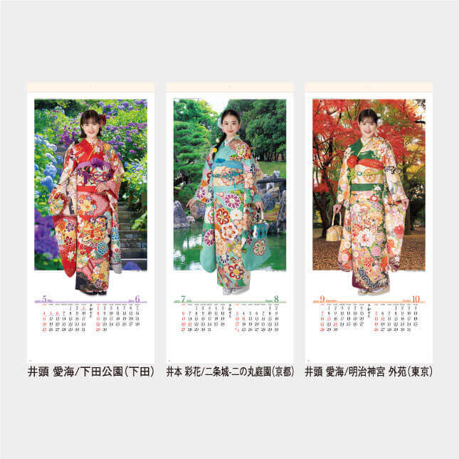 四季と庭園と優美な女優たち – 名園に映える華やかな振袖姿が素敵なカレンダーです。こちらも海外の方から大人気です!日本らしさを強くアピールしたい方におすすめです。 ※外玉仕様あり