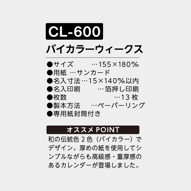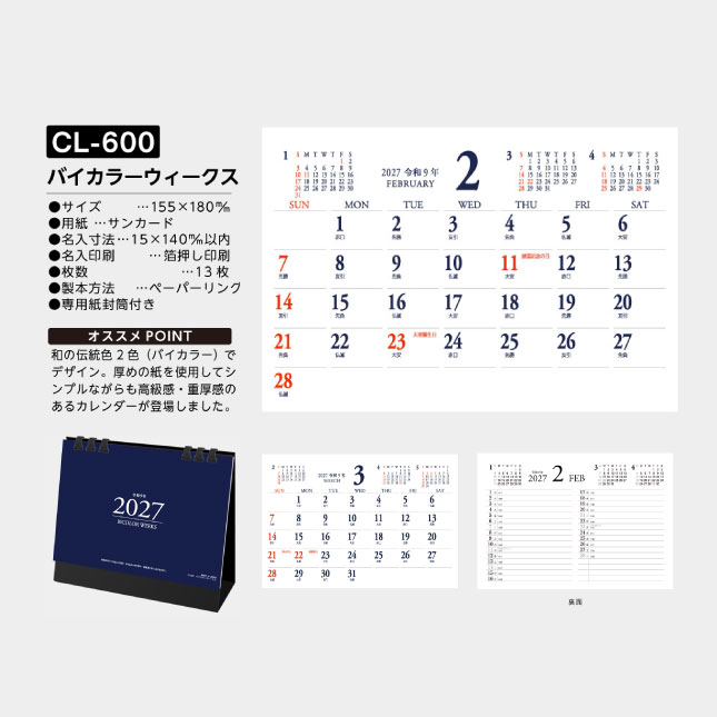 CL-600 バイカラーウィークスは、毎日のスケジュール管理を美しく、そして心地よく支えてくれる存在です。自分用にはもちろん、ビジネスシーンでの贈り物にも最適な逸品です。