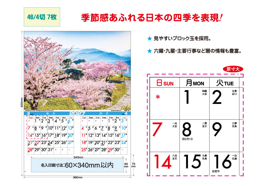 季節感を部屋いっぱいに満たしてくれるカレンダーです。メモもできる「玉」が好評です。