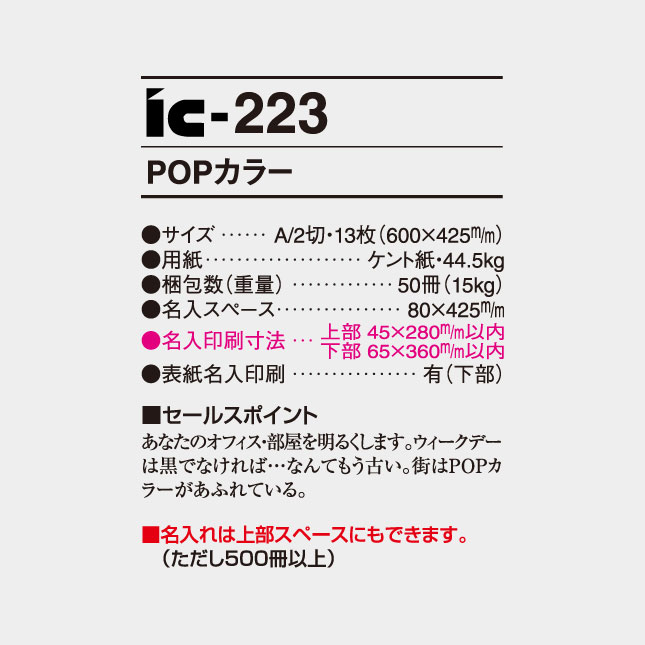 掲載価格は基本色1色です。「名入れ印刷色について」ページをご確認ください。 |