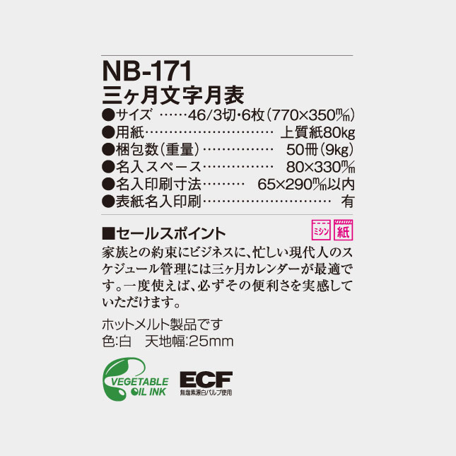 一度使えば、必ずその便利さを実感していただけます。シンプルな文字月表は、スマートなイメージを与えます。