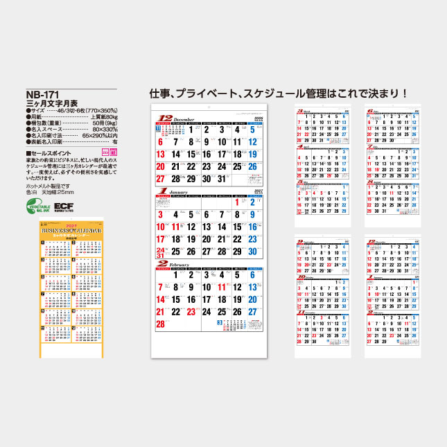 【人気商品】スケジュール管理に最適な三ヶ月名入れカレンダー