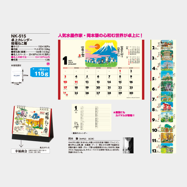 人気水墨作家・岡本肇の心和む世界が卓上に!