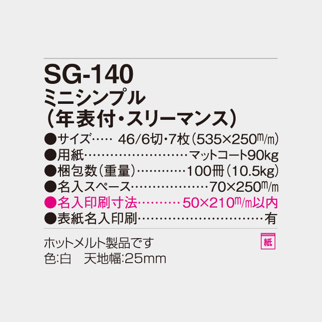 SG-140 ミニシンプル(年表付・スリーマンス)(46/6切・535×250mm)