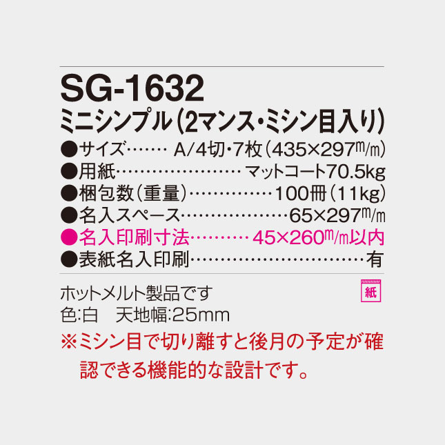 ミニシンプル(2マンス・ミシン目入り) SG-1632 の特徴