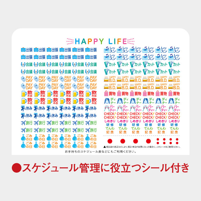 年表やスケジュールシールもついており実用性も高いカレンダーとなっています。