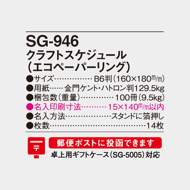 卓上 クラフトスケジュール SG-946 の特徴