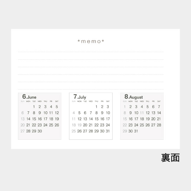 裏面には使い勝手の良い3ヶ月分のカレンダーが入ったメモ欄を掲載しています。