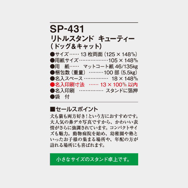 卓上 リトルスタンド キューティー(ドッグ&キャット) SP-431 の特徴
