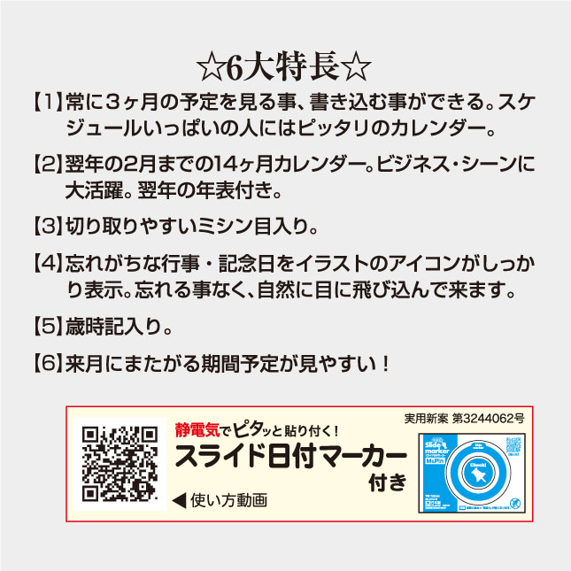【2】翌年2月までの14ヶ月カレンダー。ビジネスシーンに大活躍。翌年の年表付き。