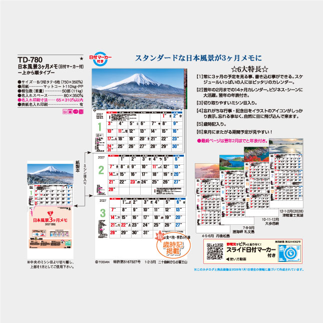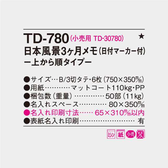 日本風景3ヶ月メモ ー上から順タイプー TD-780 の特徴