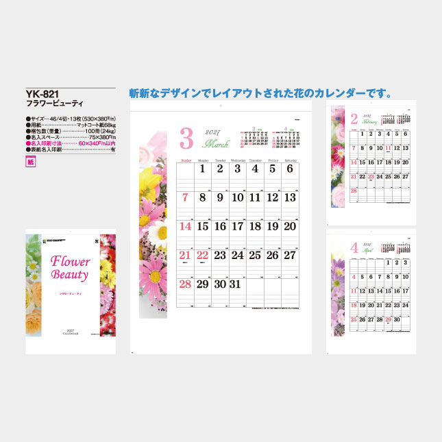 斬新なデザインでレイアウトされた花のカレンダーです