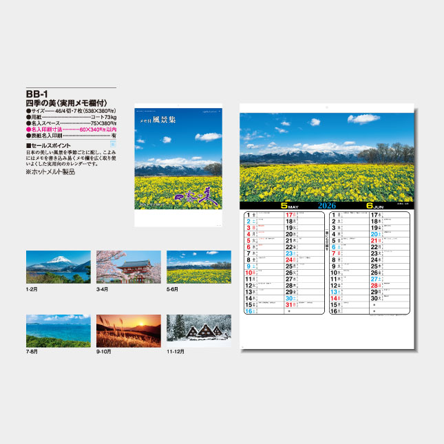 こよみにはメモを書き込み易くメモ欄を広く取り、使いよくした実用向のカレンダーです。