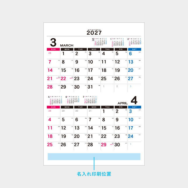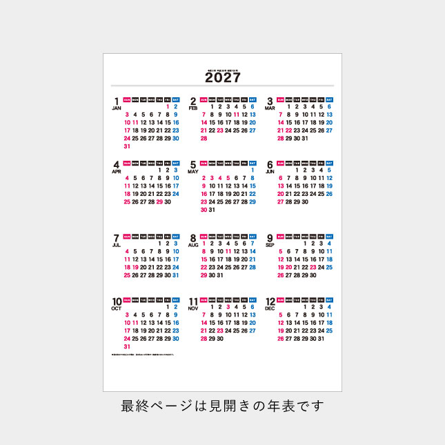 シンプル中綴じカレンダーでフルカラー名入れ可能!