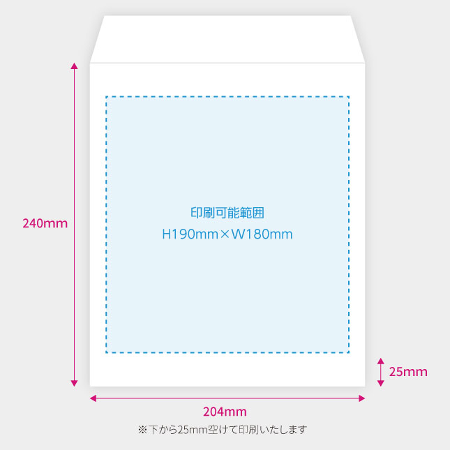 ※封筒裏の糊付け部分を避けて印刷を行うため、下から約25mmほど空けて印刷を行います。