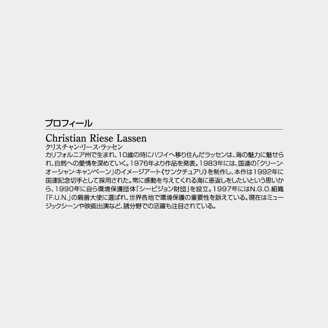 カリフォルニア州で生まれ、10歳の時、ハワイへ移り住んだラッセンは海の魅力に魅せられ、自然への愛情を膨らませ、1976年より作品を発表。1983年国連の「クリーンオーシャンキャンペーン」のイメージアート「サンクチュアリ」を制作。この作品が1992年に国連認念切手となる。ラッセンは常に感動を与えてくれる海に恩返しをしたいという思いから 1990年自ら環境保護団体「シービジョン財団」を設立。1997年N.G.O.組織「F.U.N.」の親善大使に選ばれ、世界中で環境保護を訴えている。現在はミュージックシーンや映画出演など諸分野での活躍が注目されている。