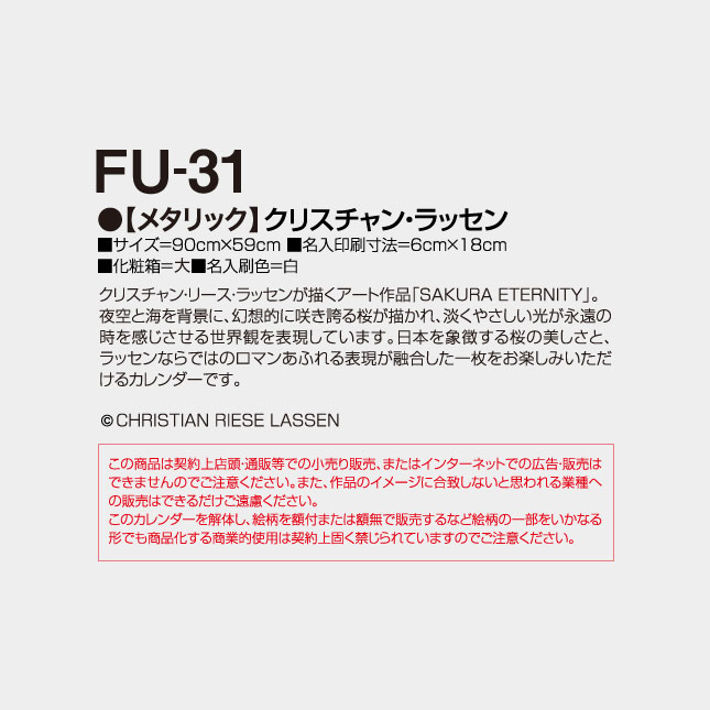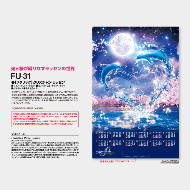 日本を象徴する桜の美しさと、ラッセンならではのロマンあふれる表現が融合した一枚をお楽しみいただけるカレンダーです。