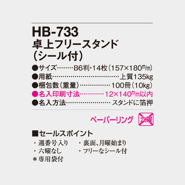 卓上 フリースタンド(シール付) HB-733 の特徴