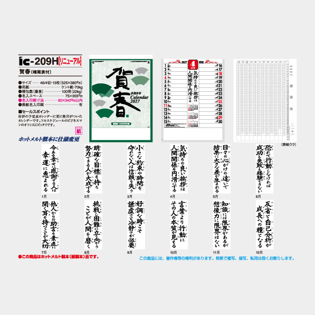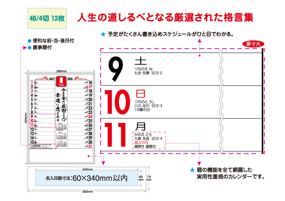 好評の予定表カレンダーにさらに格言がついたカレンダーです。