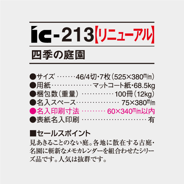 見あきることのない庭。各地に散在する古庭・名園に斬新なメモカレンダーを組み合わせたシリーズ品です。