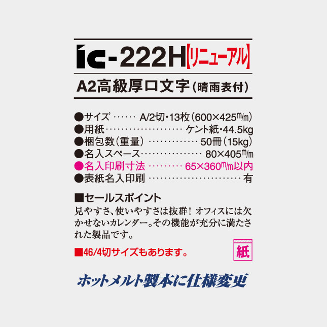 A2高級厚口文字(晴雨表付) IC-222H の特徴