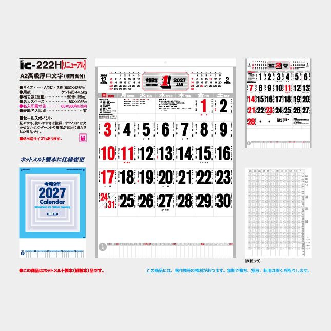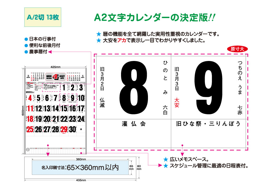 その機能が充分に満たされた作品です。企業・会社、法人様に最適なカレンダーです。