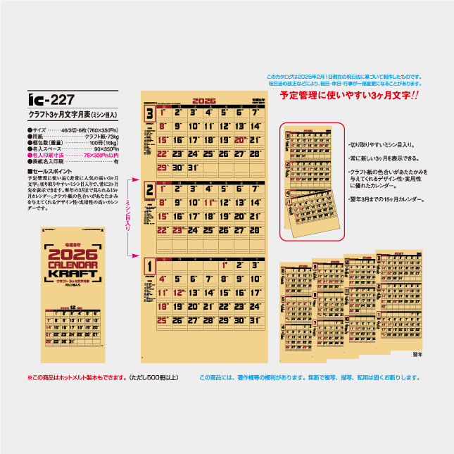 クラフト3ヶ月文字月表 IC-227 の特徴