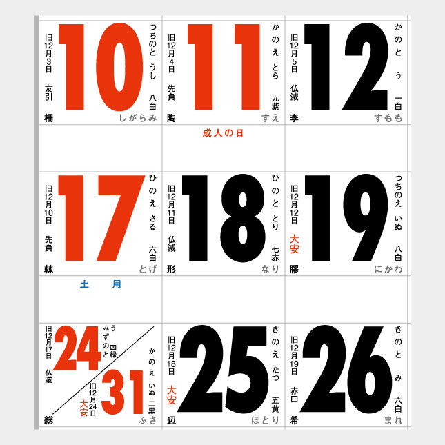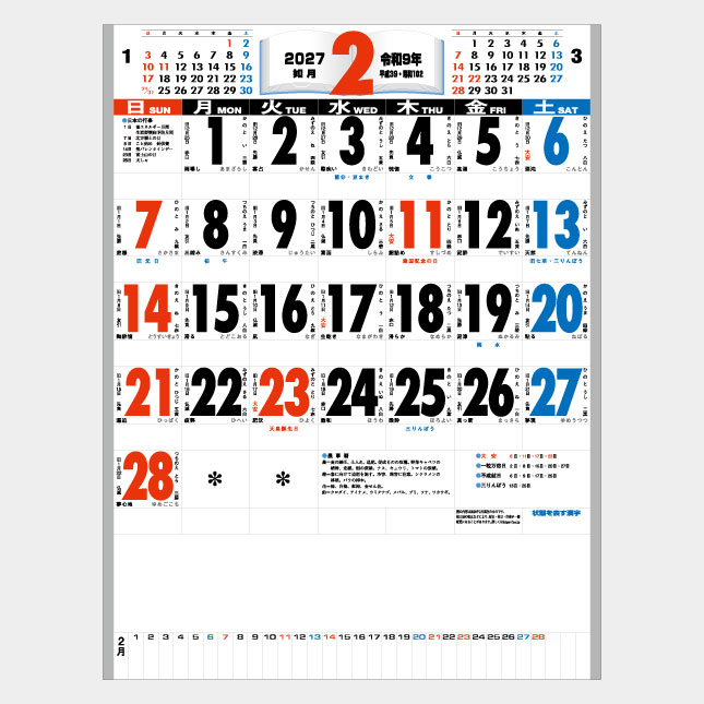 使いやすさと見やすさを追求した文字月表の定番の中の定番商品。
