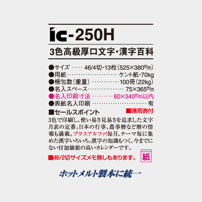 IC-250H 3色高級厚口文字・漢字百科 名入れカレンダー