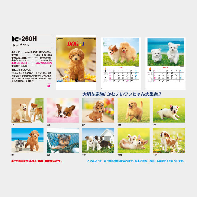 毎月かわるあどけないワンちゃんでお部屋の雰囲気も一層明るく!