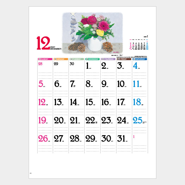 あなたの部屋をより一層明るくする、そんなかわいい花たちのカレンダーです。