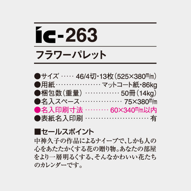 フラワーパレット IC-263 の特徴