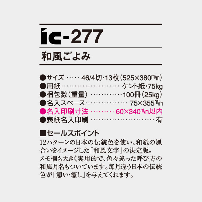 和風ごよみ IC-277 の特徴