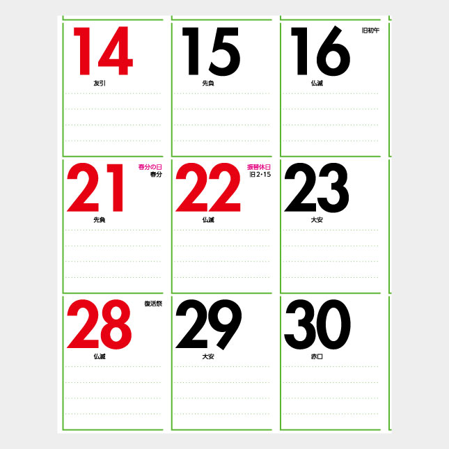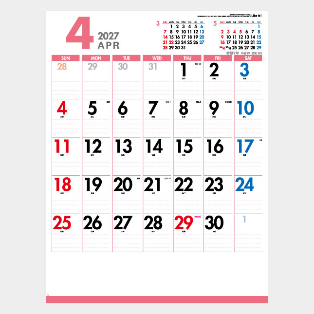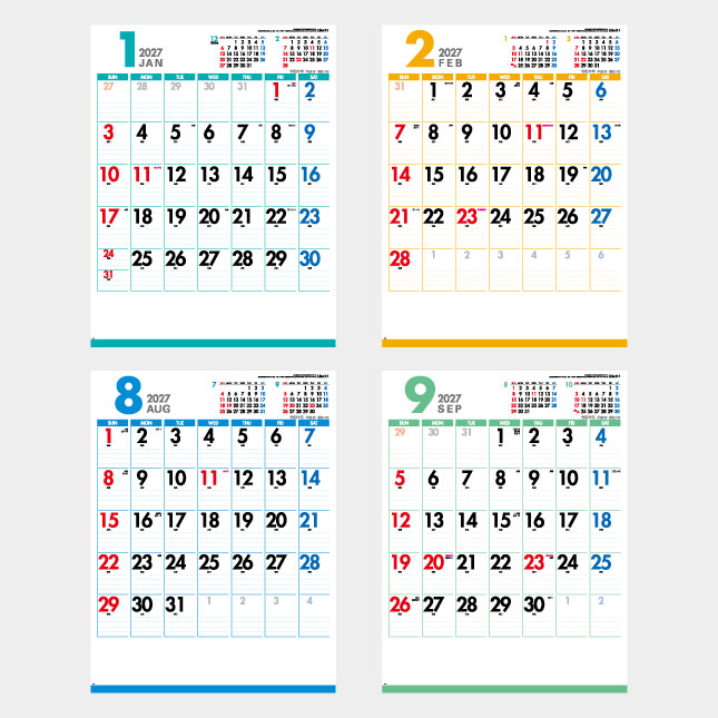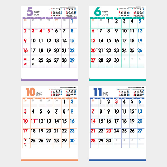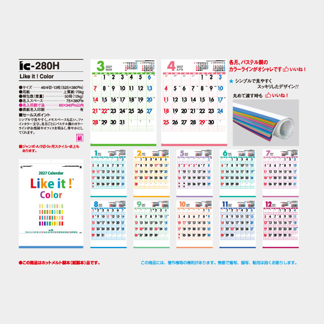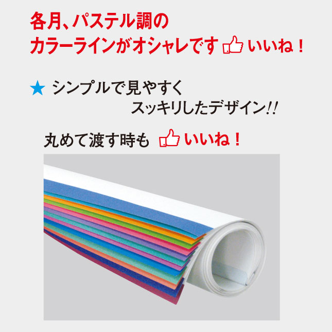 各月ごとにパステル調のカラーラインがお部屋やオフィスを明るく、華やかにしてくれます。