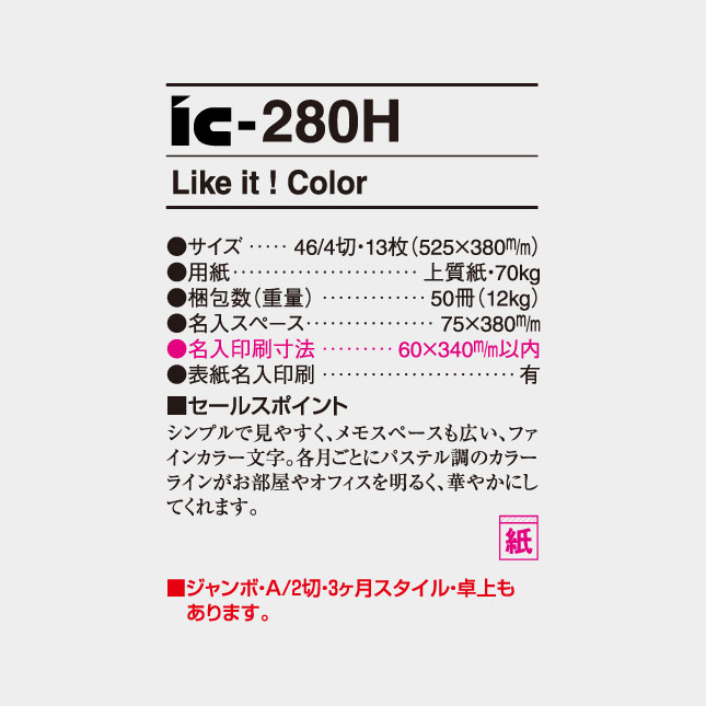 IC-302 Like it ! Color 3-month 760×350mm 46/3切