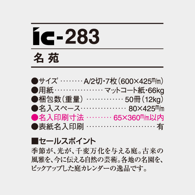 名 苑 IC-283 の特徴