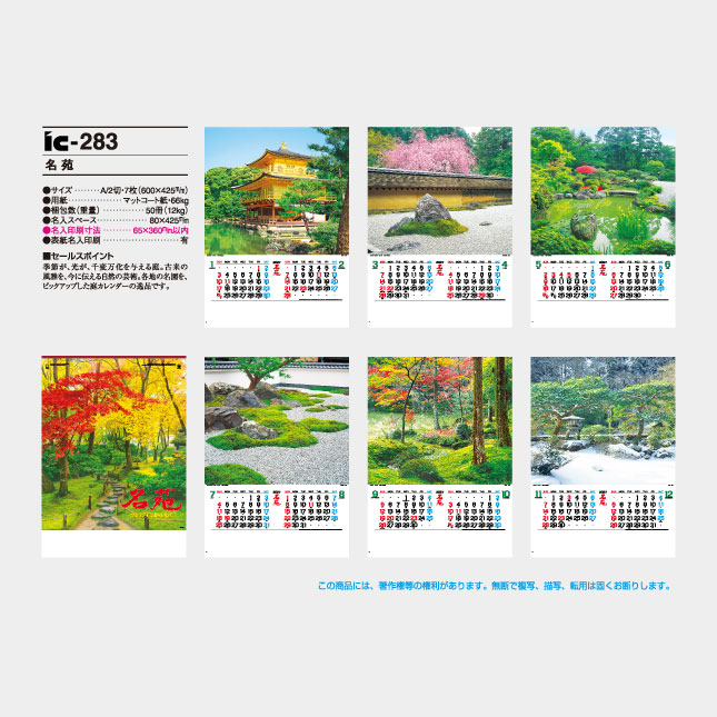 各地の名園を、ピックアップした庭カレンダーの逸品です。