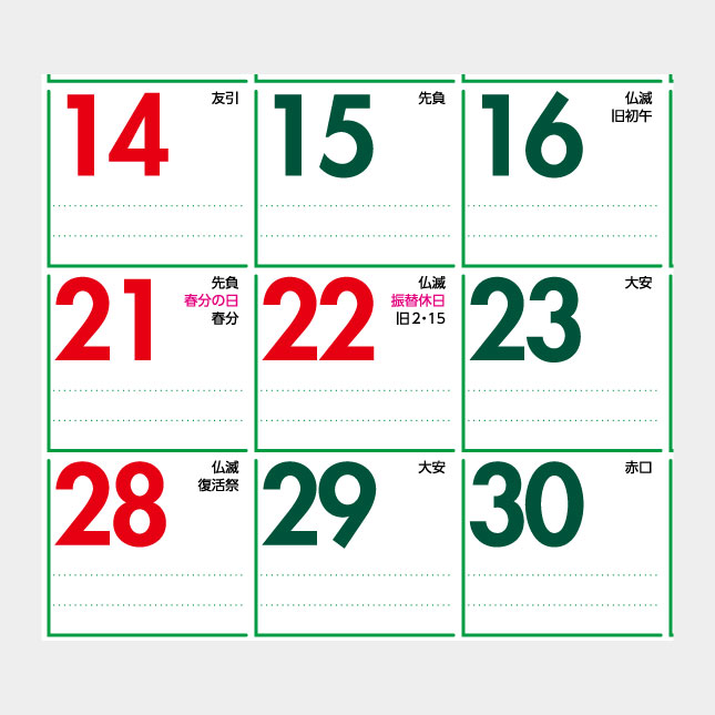 ミシン目入リで常に2ヶ月先の予定まで確認でき、スケジュール管理に役立ちます。