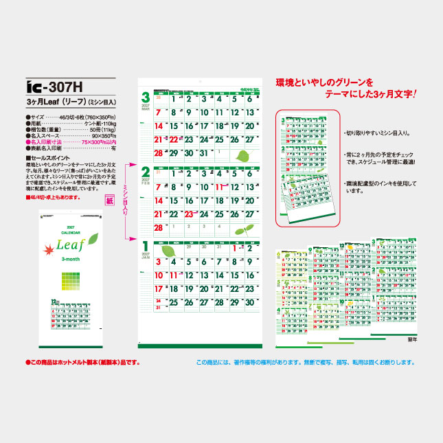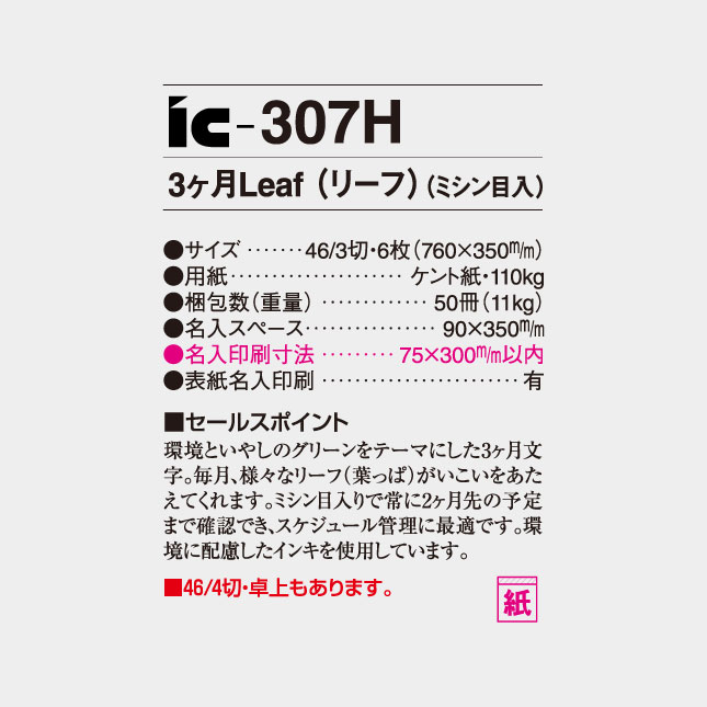3ヶ月 Leaf(リーフ)(ミシン目入) IC-307H の特徴