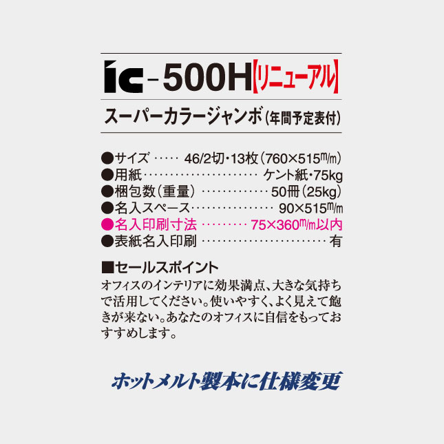 スーパーカラージャンボ(年間予定表付) IC-500H の特徴