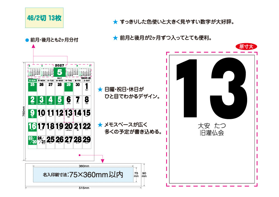 | 商品名 | スーパーカラージャンボ(年間予定表付) |
