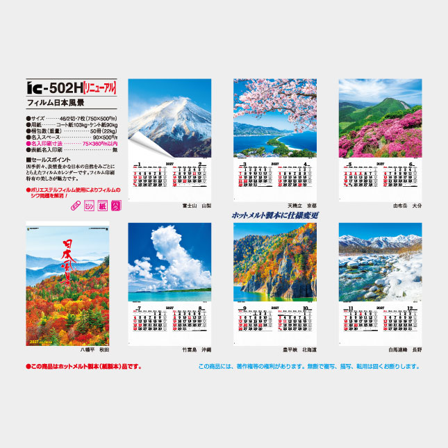 四季折々、表情豊かな日本の自然をみごとに捉えたフィルムカレンダーです。