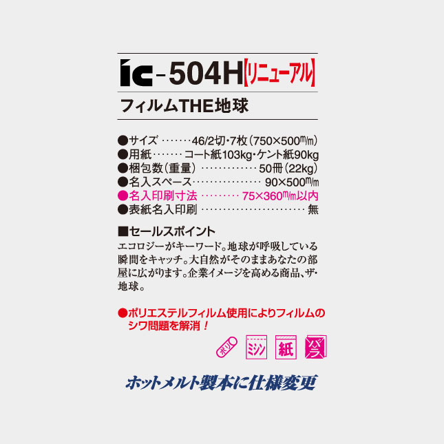 【フィルム】THE地球(ミシン目入り)IC-504H の特徴