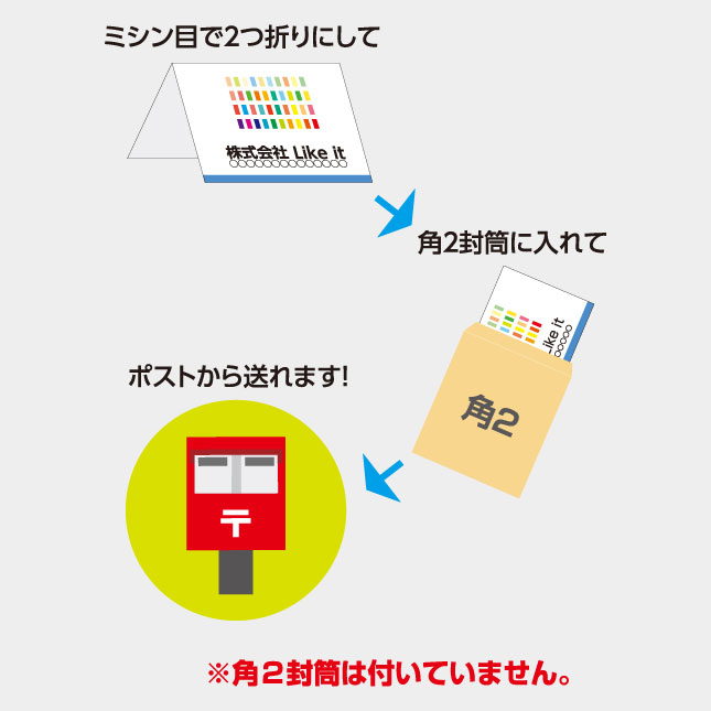 ミシン目で2つ折りにして角2封筒に入れれば郵送で送れます。