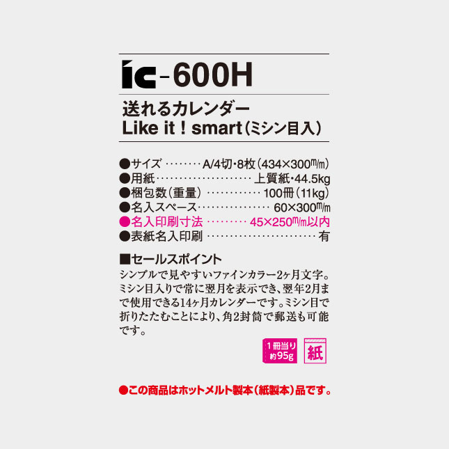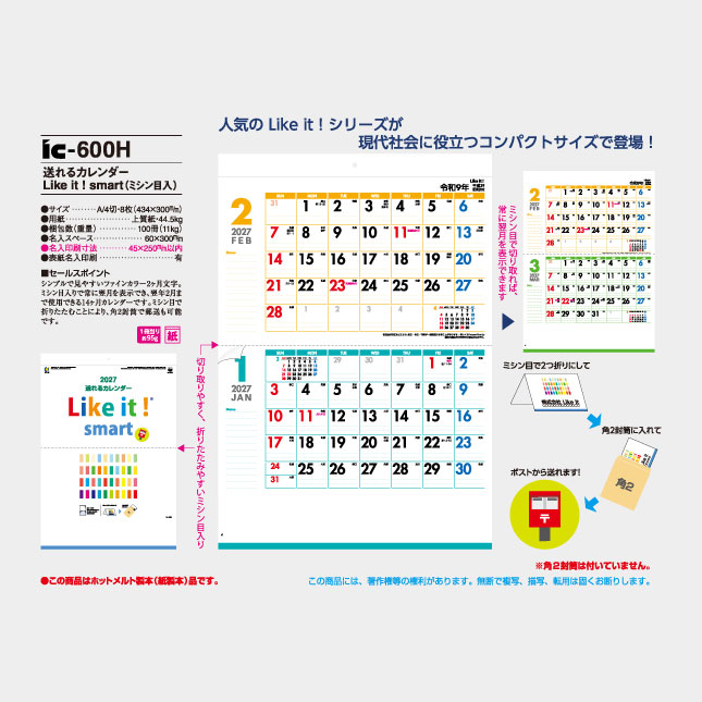 送れるカレンダー Like it! smart(ミシン目入) IC-600H の特徴