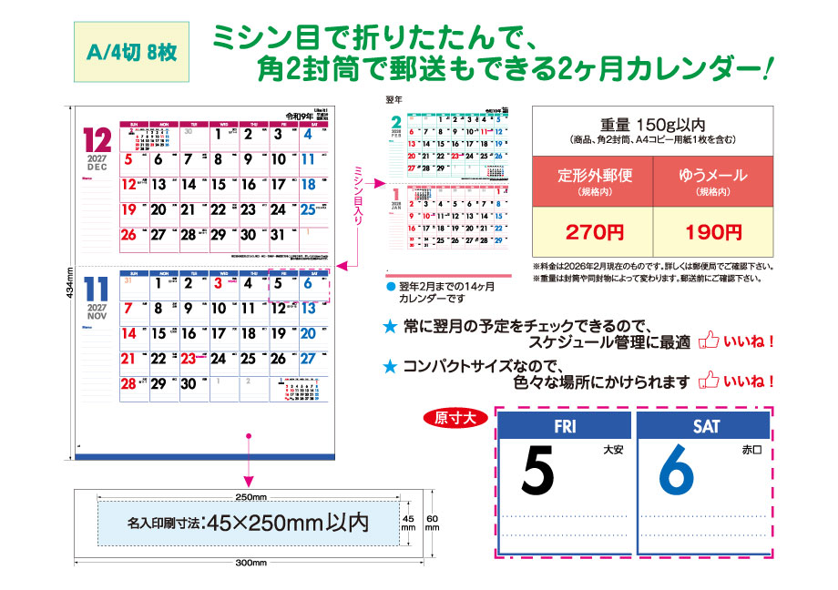 | 商品名 | 送れるカレンダー Like it! smart(ミシン目入) |