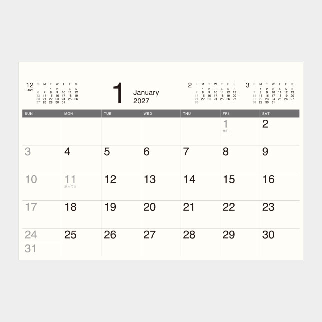 シンプルなモノトーンデザインのスタイリッシュなカレンダー。
