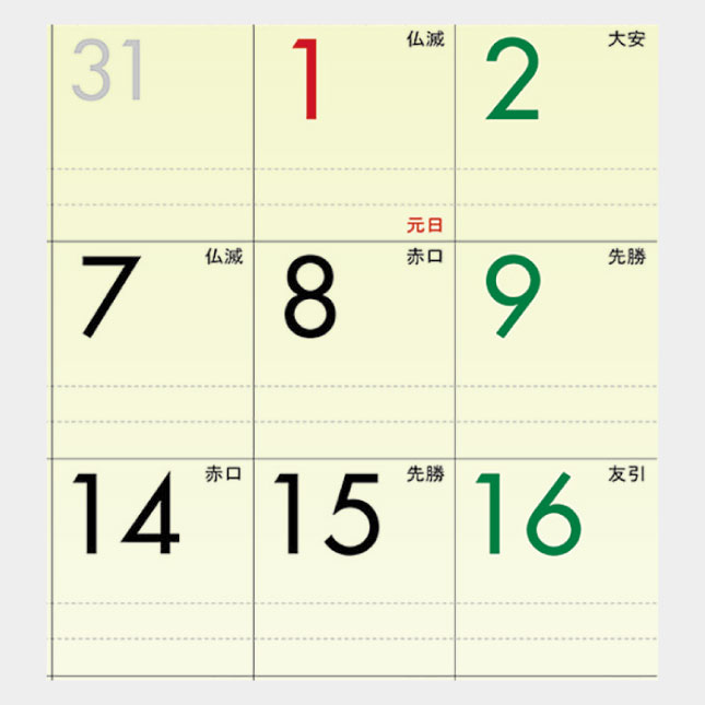 罫線入りのメモ欄や前後月も付いて実用性も兼ね備えています。