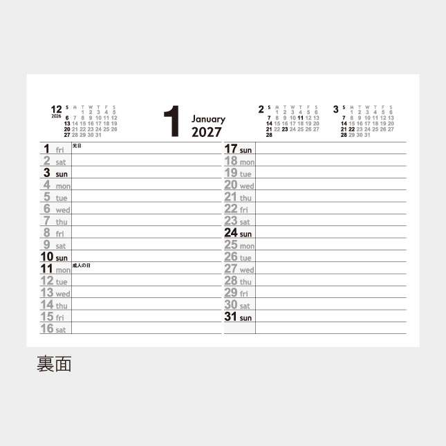 裏面には、スケジュールを書き込めるメモ欄もあり実用的です。