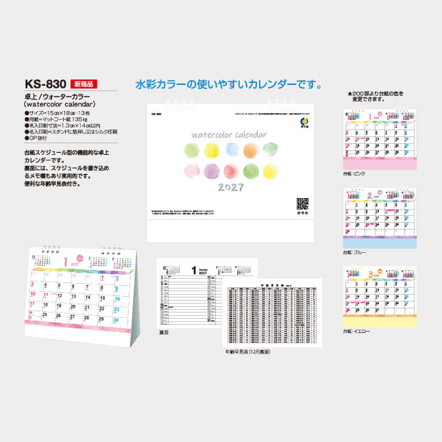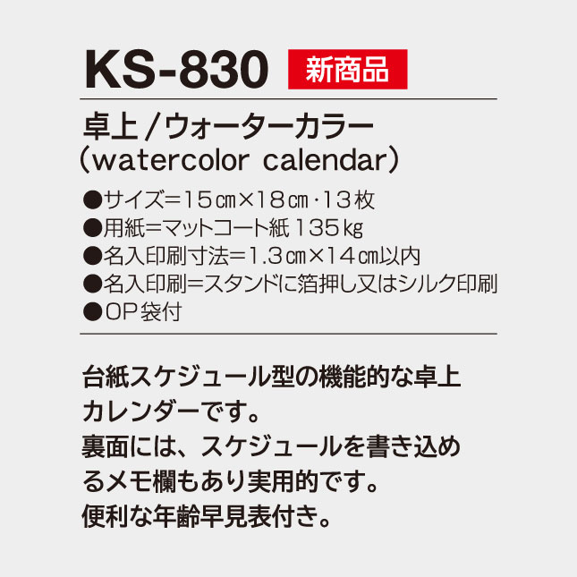 卓上 ウォーターカラー(watercolor calendar) KS-830 の特徴